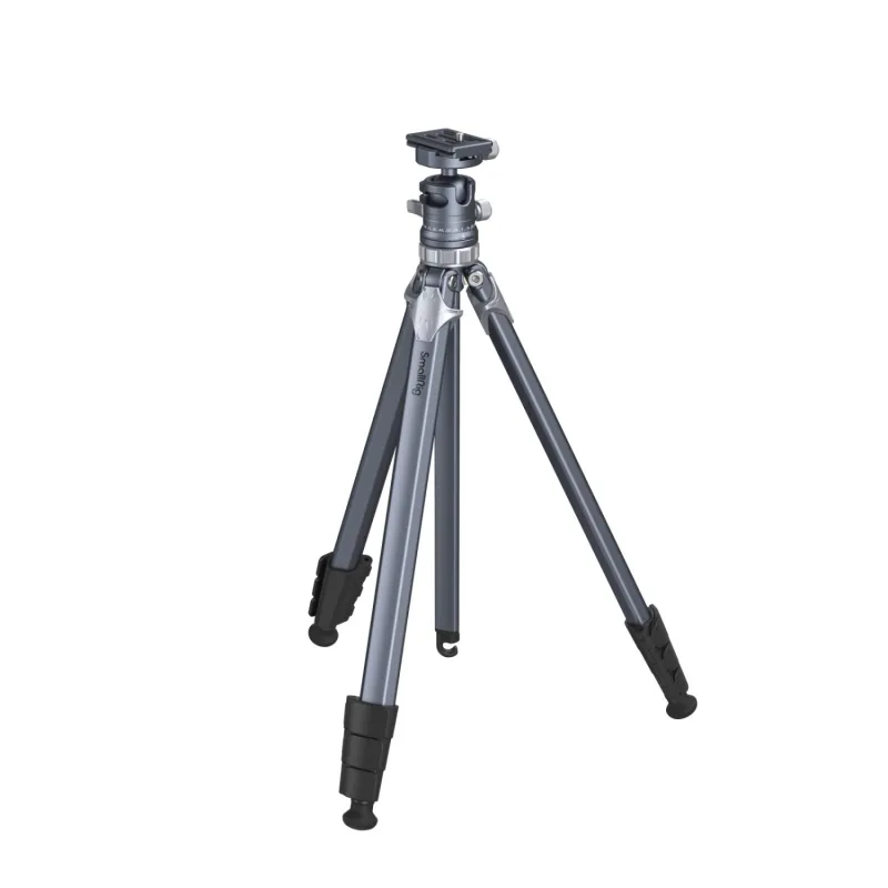 The AP-02 Lightweight Aluminum Travel Tripod from SmallRig is a versatile and compact travel tripod with a load capacity of 17.6 lb and a maximum height of 62.6". It weighs only 2.54 lb and folds down to a length of 20.9", making it easy to pack in a backpack and carry to any location it might be needed. The lightweight aluminum legs and center column have a faceted shape for added strength and rigidity.