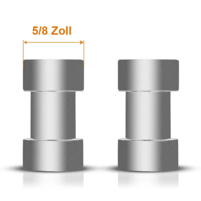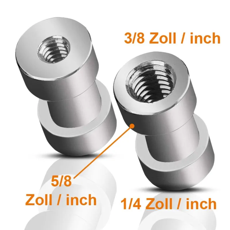 Turn a 1/4 inch or 3/8 inch thread into a 5/8 inch spigot mount with just a few simple steps, for example if you only have a camera tripod at hand but need a lamp tripod. Now you can attach e.g. a flash tilt or Magic Arm with 5/8 inch spigot mount there. So you are maximally flexible in rigging your next setup! You can also use the adapter to attach for example a Magic Arm with screw connection to a lamp tripod.