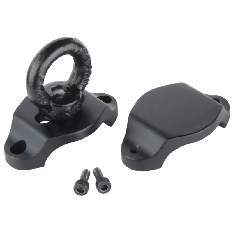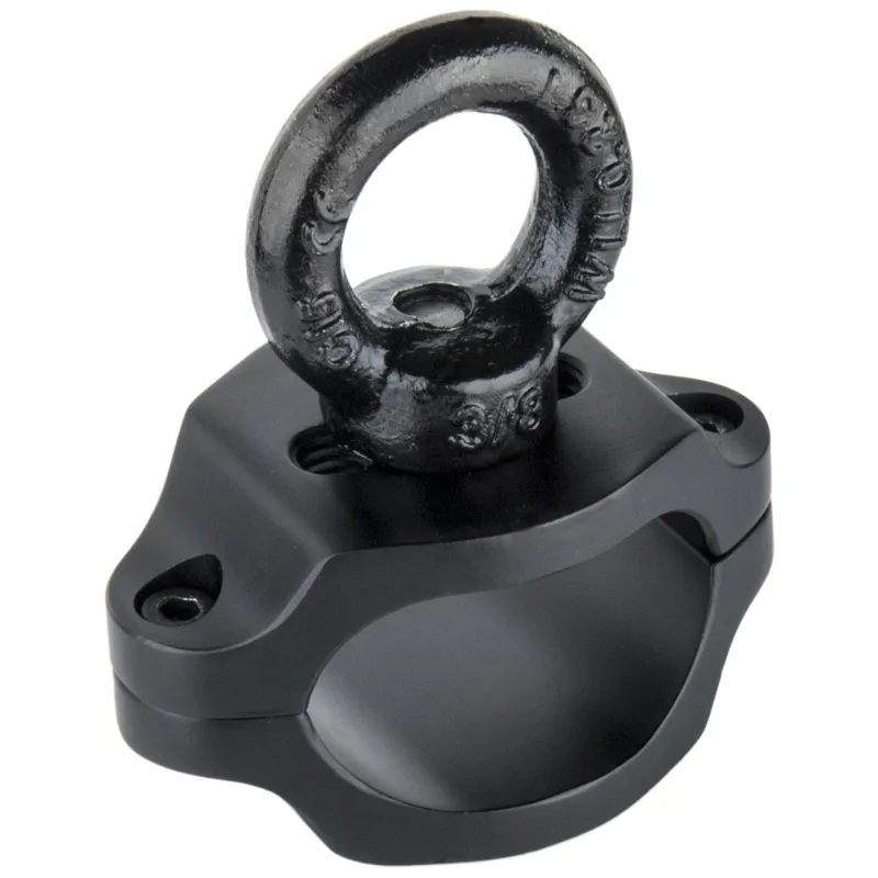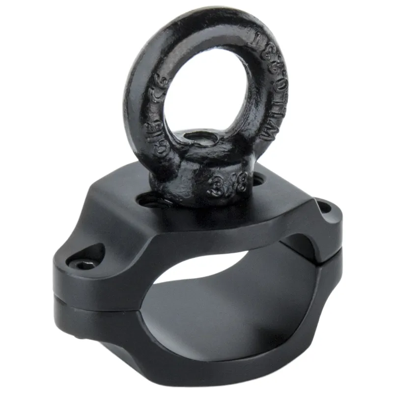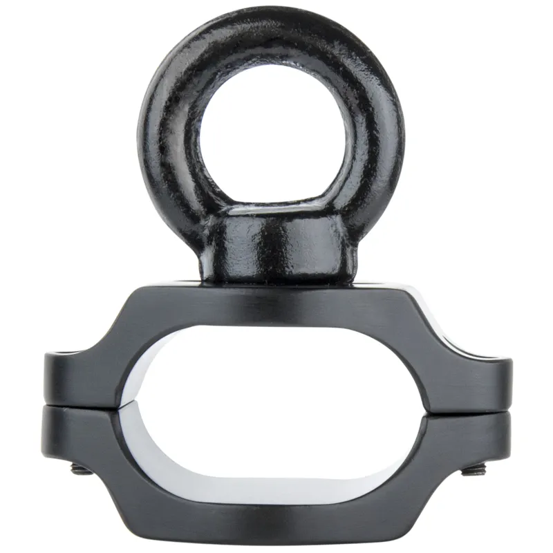 The Kupo Safety Attachment Easyrig Stabilizers is constructed from two black aluminum parts that can be tightly mounted on the central support bar with two supplied screws. It features an Eyerig equipped on one end, allowing it to be hooked up with a spring hook or tied with a safety rope for support from the back while working in certain environments such as rooftops, poolside, or cliffs.