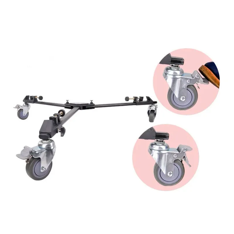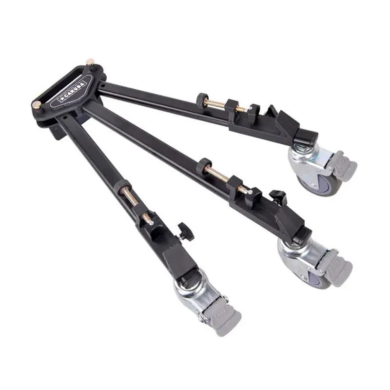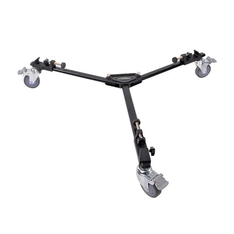 The Caruba tripod dolly is a light weight and easy to fold, so you can bring it with you easily. The universal feet lock fits in almost every tripod. The most important feature of a good dolly are the wheels. It is important that you can move your tripod from one place to the other smoothly.