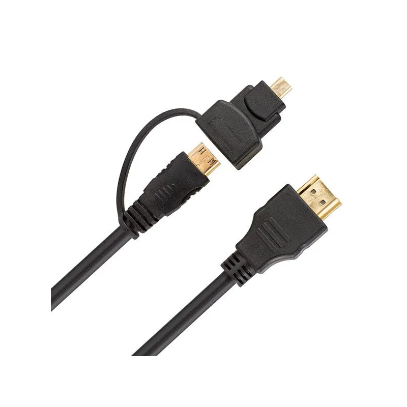 It has an interchangeable connector at one end from Mini to Micro HDMI. To connect the cable to a device with Micro-HDMI input/output, connect the converter to the cable. When you want to use the cable to connect a device with Mini-HDMI input/output, simply remove the converter. This way you only need to carry one cable to connect multiple devices.
