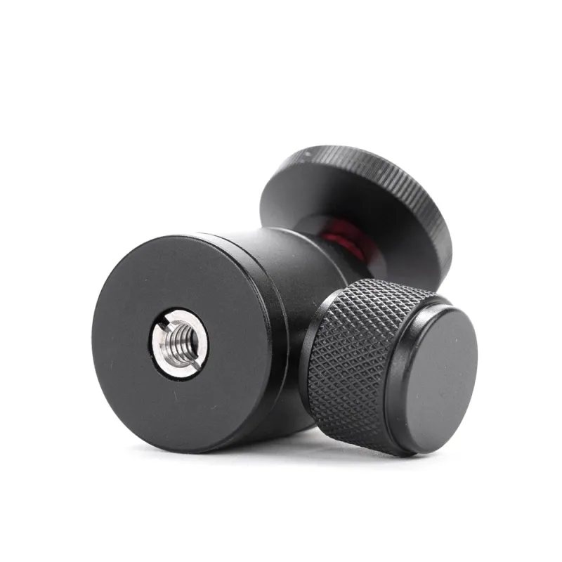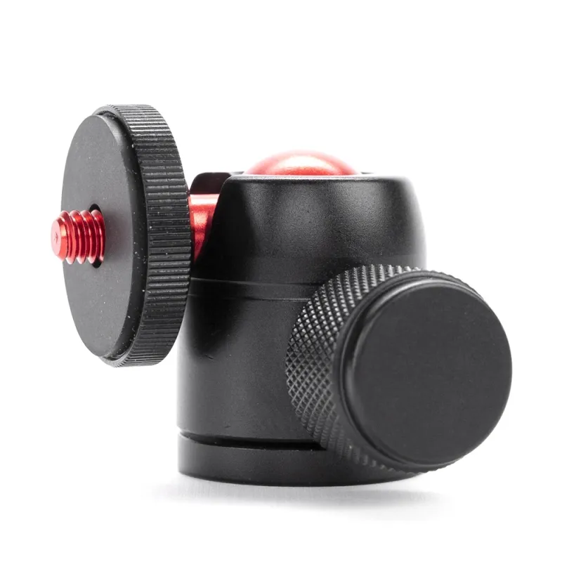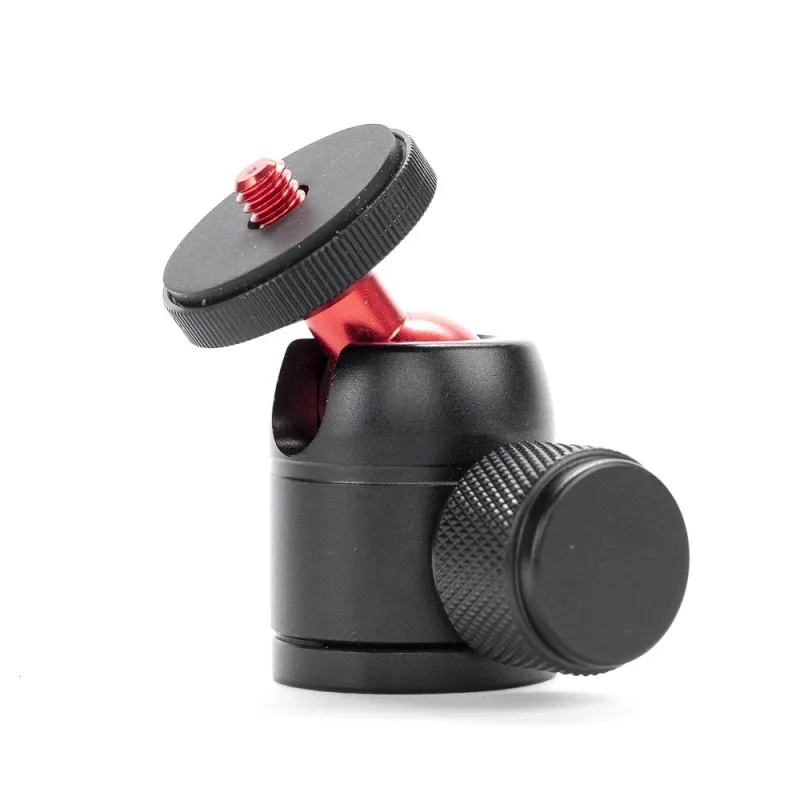 This ball head mounts on 3/8” or ¼” male threads via the included reducer bushing. The base rotates 360°, and the ball platform tilts 90°. Easily adjust the angle of your LED Light or Monitor with this single lever ball head.