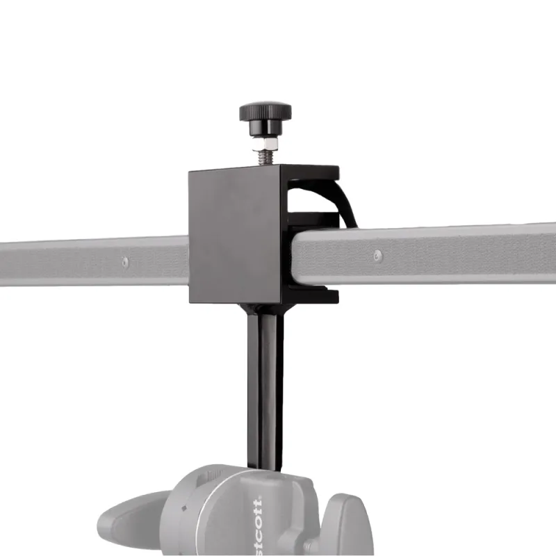 This clamp is custom-tailored to pair a Scrim Jim frame with a Grip Head for precise and secure mounting to a light stand or c-stand. This mounting method is ideal when using your scrim for diffusing studio lights, bouncing sunlight, blocking light overhead, or even cutting bright backgrounds.