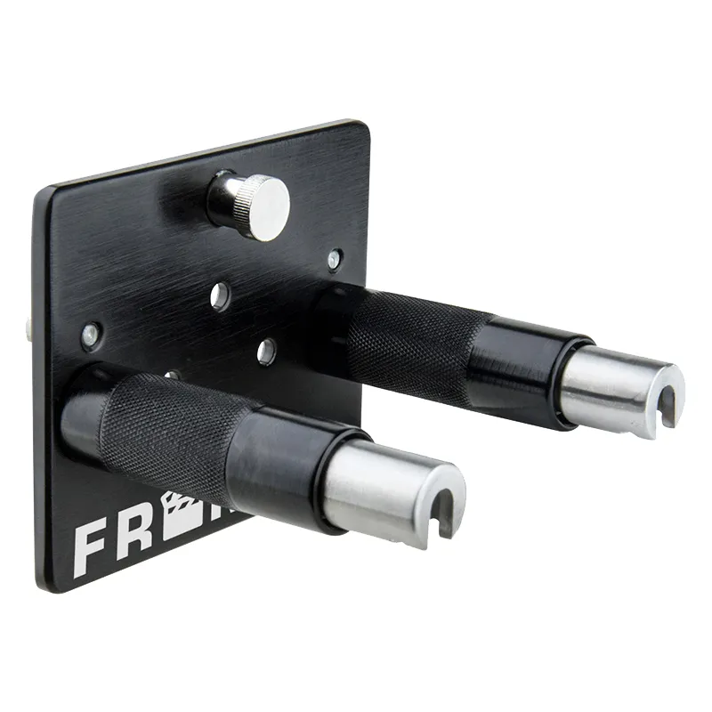 Simply slide the ends of the mounts two posts onto the heads front box mounting screws, then turn the black aluminum sleeves clockwise until they are securely locked in place.