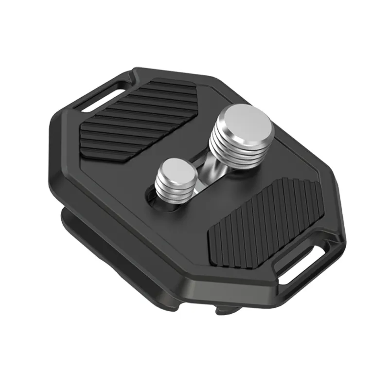 The Falcam F38 Quick Release dual screw thread plate V2 can be used with Falcams F38 Quick Release accessories for easy mounting and dismounting. In addition, there is a locking pin, one 1/4 20 and one 3/8 16 screw that can be used with the others for a stable and non twisting attachment.,