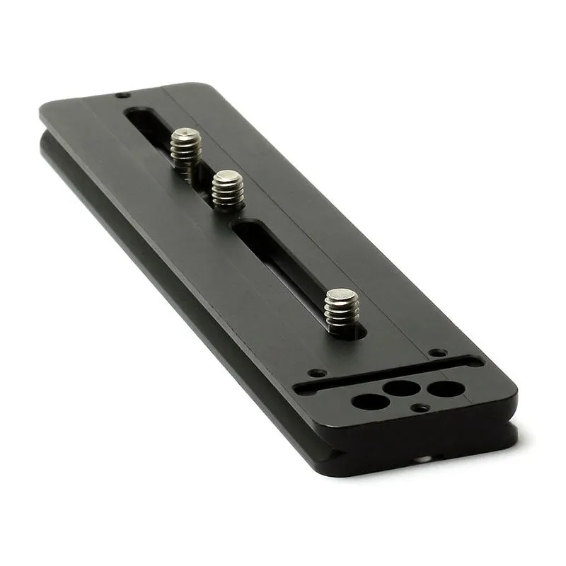 The P-50 is a 6.58” long, double dovetail, Arca-Swiss style quickrelease plate. It is used to connect a camera lens, fitted with both a rotation collar and tripod mounting foot, to a compatible quick-release clamp. Wimberley plates are compatible with most Arca-Swiss style quick-release clamps, such as those made by Wimberley, Really Right Stuff, Kirk Enterprises, Markins, Arca-Swiss, Foba, Graf and others.