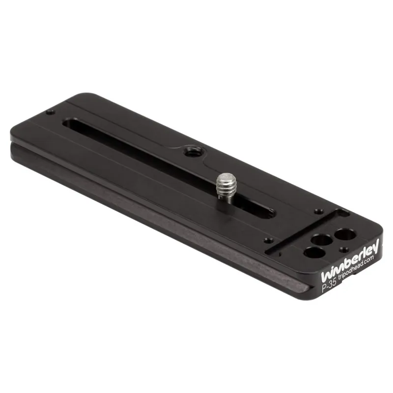 The P-35 is a 5,00” long, double dovetail, Arca-Swiss style quickrelease plate. It is used to connect a camera lens, fitted with both a rotation collar and tripod mounting foot, to a compatible quick-release clamp. Wimberley plates are compatible with most Arca-Swiss style quick-release clamps, such as those made by Wimberley, Really Right Stuff, Kirk Enterprises, Markins, Arca-Swiss, Foba, Graf and others.