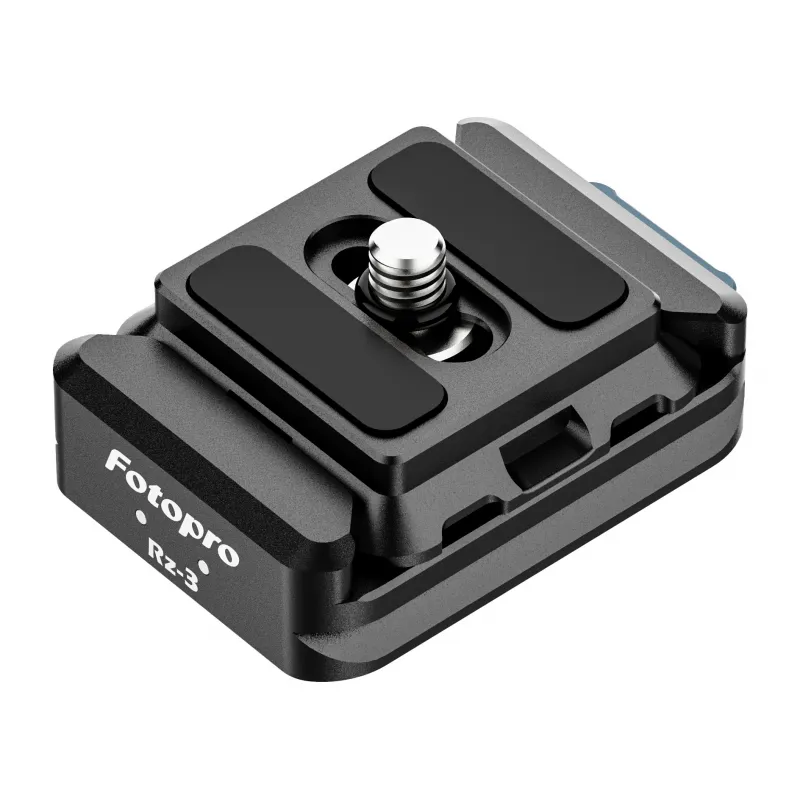 Fotopro RZ-3 yra kompaktiška ir praktiška greito atleidimo plokštė fotografams ir filmų kūrėjams, vertinantiems patikimumą ir greitą veikimą. Dėl automatinio užrakto, kameros montavimas užtrunka vos kelias sekundes, nereikia varžtų ar įrankių. Tiek bazė, tiek greito atleidimo plokštė yra suderinamos su Arca-Swiss sistema. Tai leidžia greitai keisti įrangą tarp trikampio, stabilizatoriaus ar slankiklio. Nepaisant mažo dydžio (56 x 40 x 17 mm) ir lengvo svorio (tik 60 g), tvirtinimas gali lengvai palaikyti kamerą, sveriančią iki 8 kg. Metalinė konstrukcija garantuoja ilgaamžiškumą, o 1/4 sriegiai palengvina integraciją su dauguma rinkoje esančių foto ir vaizdo įrenginių bei priedų.