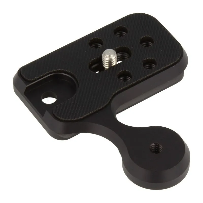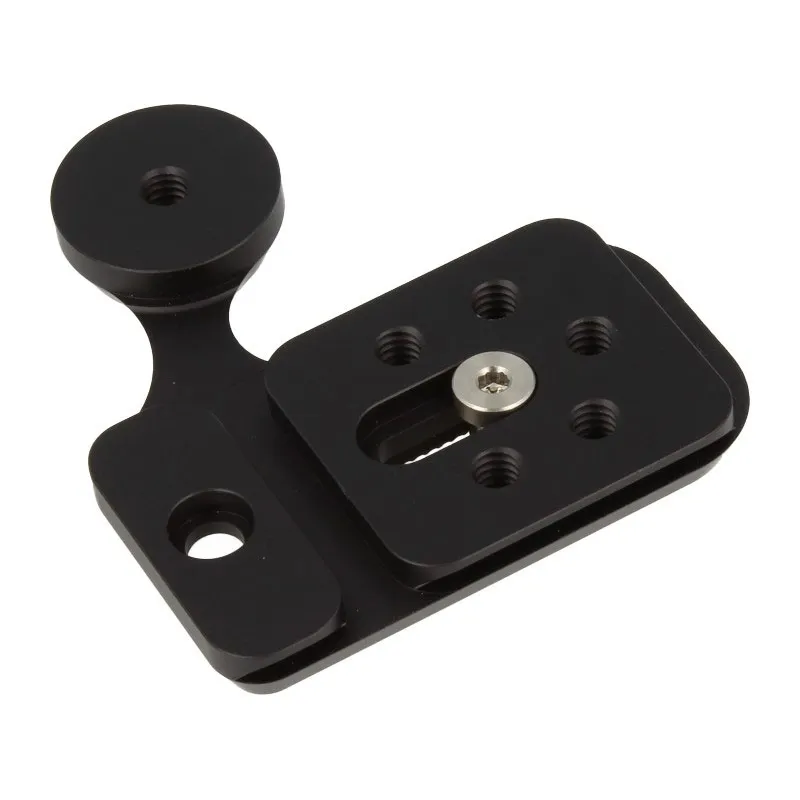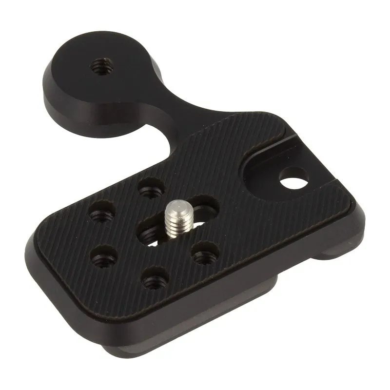 The Caruba M-Plate allows you to mount your camera on either a Manfrotto RC2 mount or on an Arca-Swiss compatible mount. This gives you more freedom in using tripods with different types of mount. In addition, the M-plate is equiipped with an M-link port for attaching accessories. The top of the plate has an anti-slip coating for a firm grip on the camera and to prevent scratches. The Caruba M-Plate is attached to the tripod socket of your camera with a 1/4" mounting screw.
