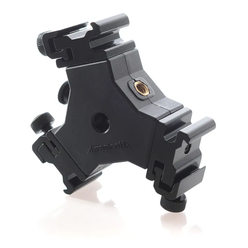 Designed by renowned photographer Bruce Dorn, the Westcott Triple Threat Speedlite Bracket allows you to use three lightweight system flash units combined on an umbrella or softbox. Most lightweight flash units have a power output of about 60Ws, with the Triple Treat you have a total power output of about 180W/s at your disposal. This is comparable to a small studio head, but you keep the TTL options depending on the flash unit you use.
