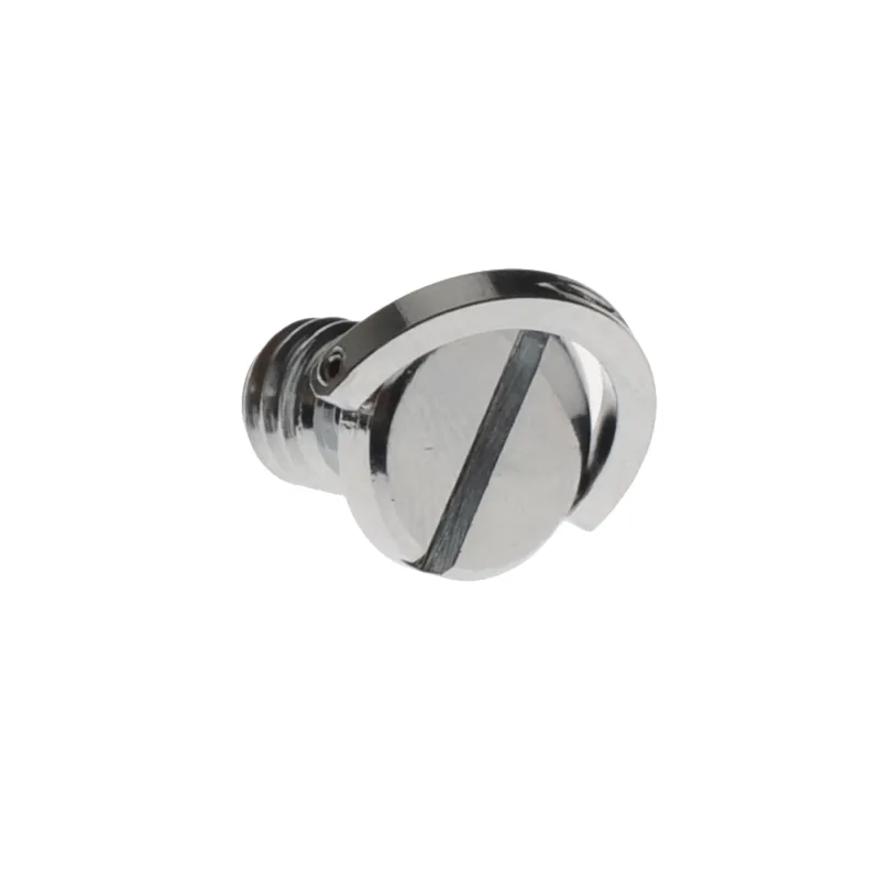 The Caruba 3/8" Screw with D-Ring is a spare replacement screw with a 1/4" thread and a D-ring. The screw has a width of 14mm without the D-ring and a width of 17mm with the D-ring. The total length of the screw is 16mm. A screw such as this one are often used to attach a quick release plate to your camera.