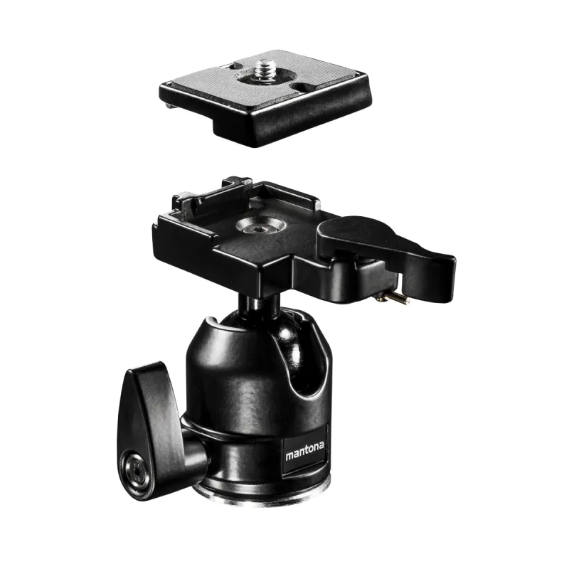 While the mantona Scout XL ball head is strongly recommended for use on the mantona Scout tripod (and is also factory-fitted on this tripod as standard), it can of course also be used on other photographic or lighting tripods. The mantona Scout ball head comes supplied with a quick release plate. Additional quick release plates – very useful to have in the field – are separately available from mantona (part number 18004).