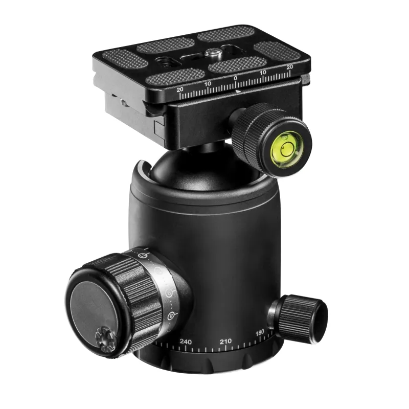 - Exclusively fitted ball head with high load-bearing capacity and many professional features