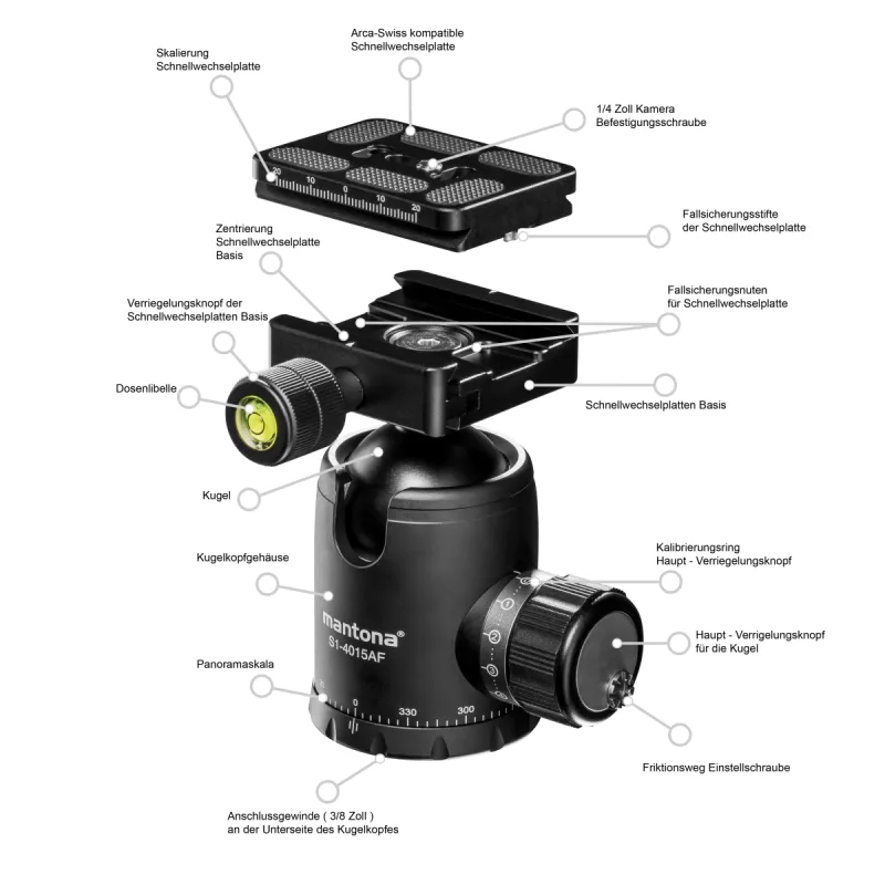 mantona Fortress S1-4015AF Ball Head 15kg 40mm 443g