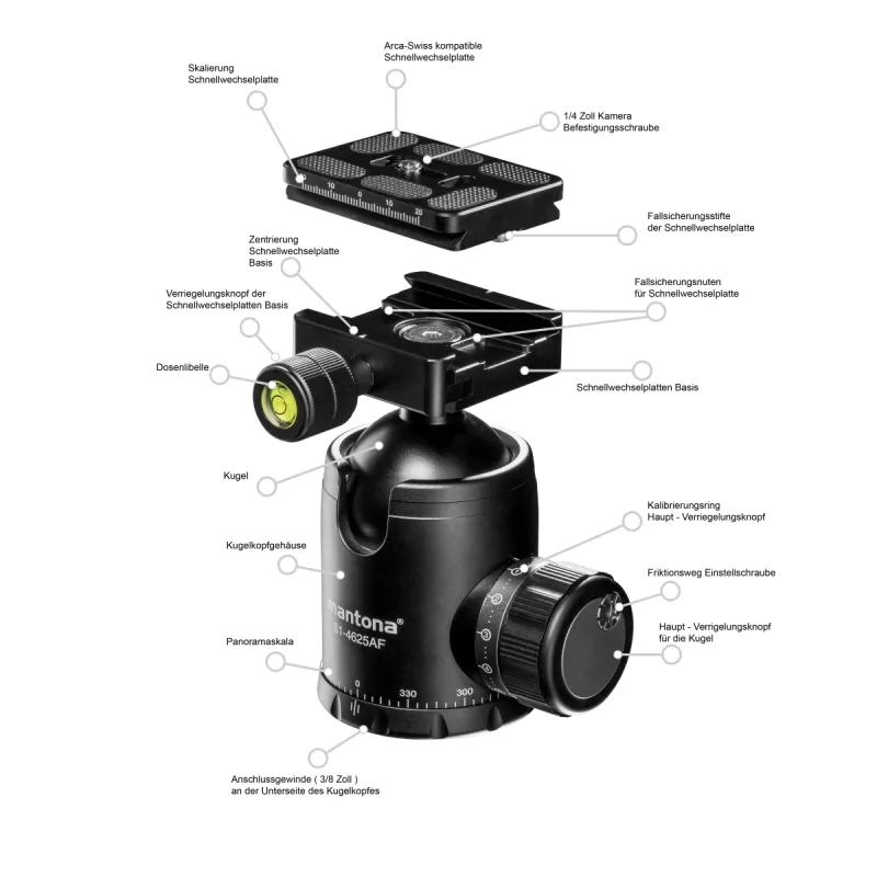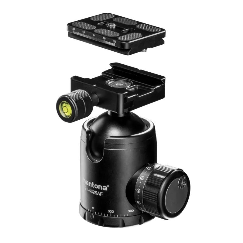 The ball heads in the mantona Fortress series are the ideal partner for your photo and video equipment. Whether a telephoto lens, spotting scope, digital camera, (digital) SLR, mirrorless DSLM camera or even camcorder and heavy video cameras – this ball head is very versatile. The precision fit and accuracy of these ball heads enable work to be carried out precisely, to the nearest millimetre, both with heavy and light equipment like action cams or smartphones (separate mount required).
