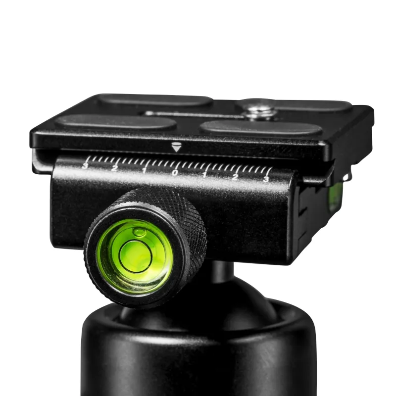 - Arca-Swiss compatible 50-mm quick-release plate with centre marking