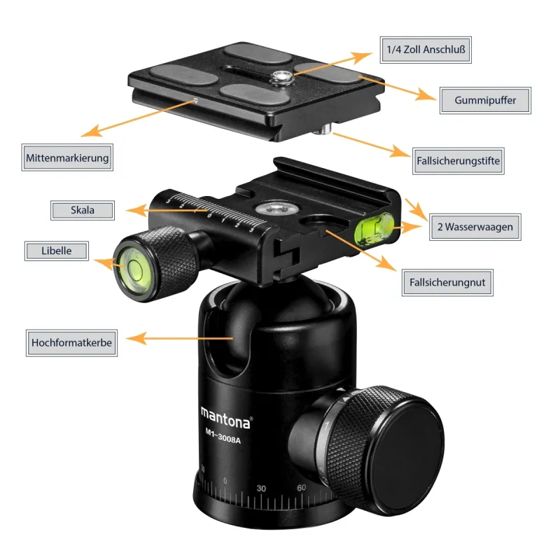 With the mantona Onyx series, you are purchasing ball heads of the highest quality and functionality at an attractive price. These ball heads made from aluminium feature excellent workmanship and high-quality controls, and are comfortable to use. Precision is combined with low weight and a high load bearing capacity.