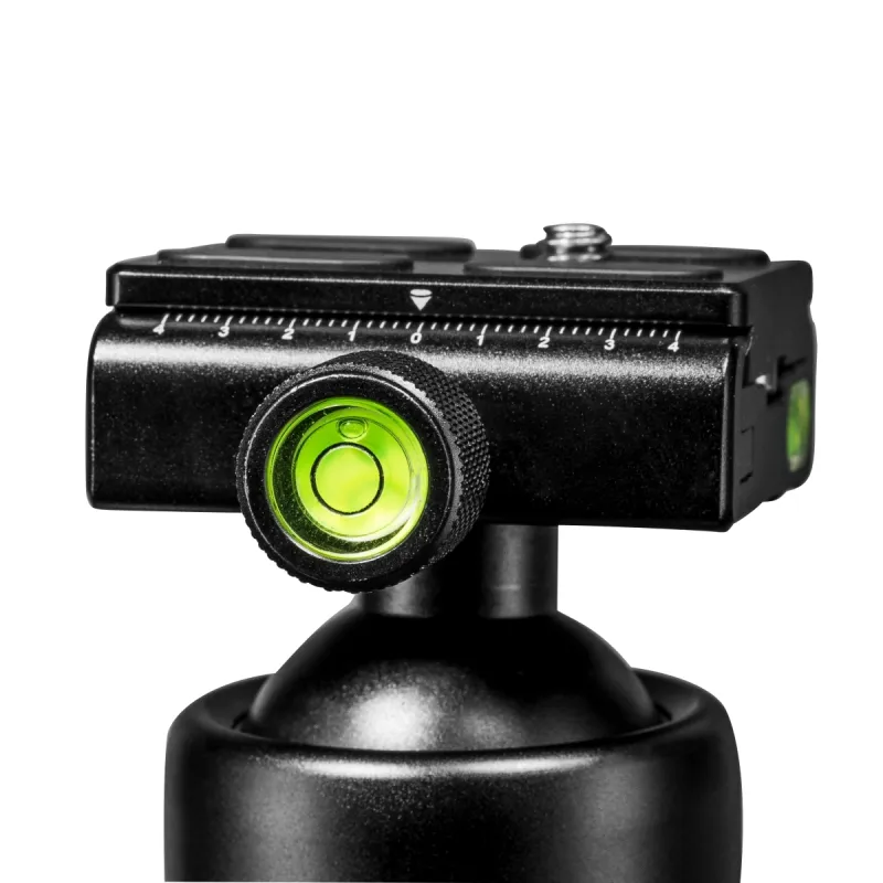 - Arca-Swiss compatible 50-mm quick-release plate with centre marking