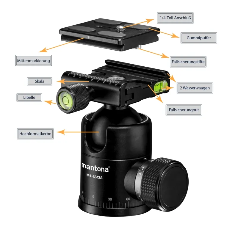 With the mantona Onyx series, you are purchasing ball heads of the highest quality and functionality at an attractive price. These ball heads made from aluminium feature excellent workmanship and high-quality controls, and are comfortable to use. Precision is combined with low weight and a high load bearing capacity.