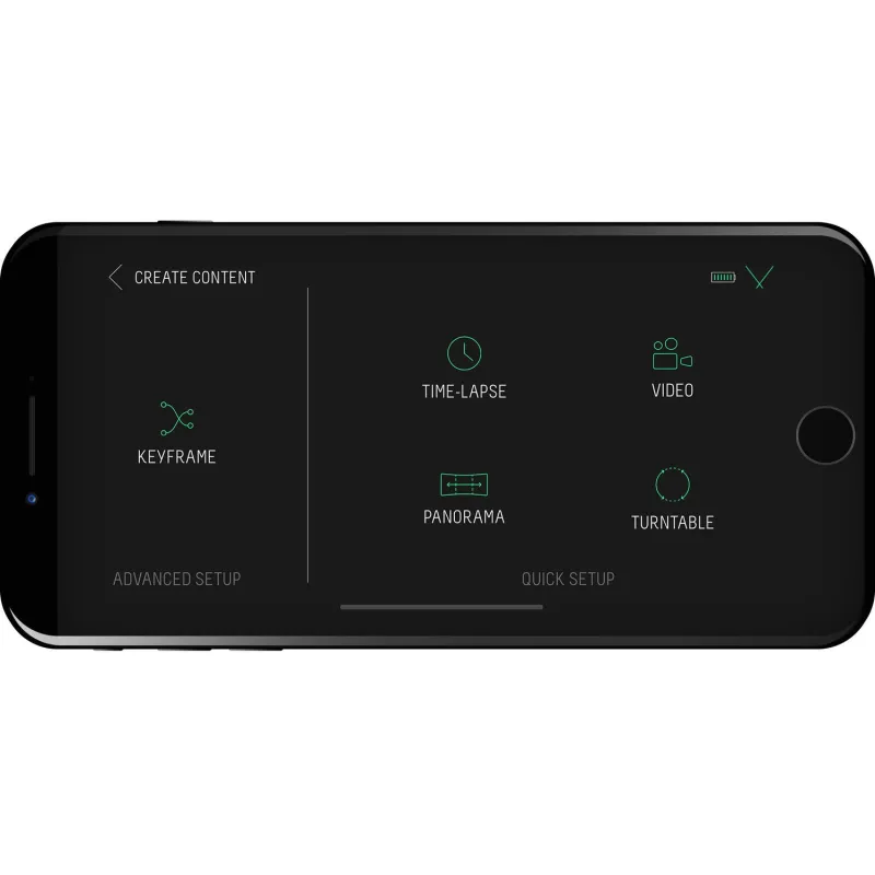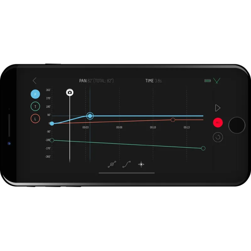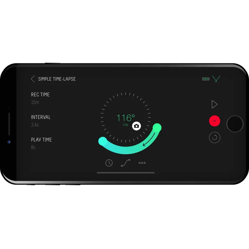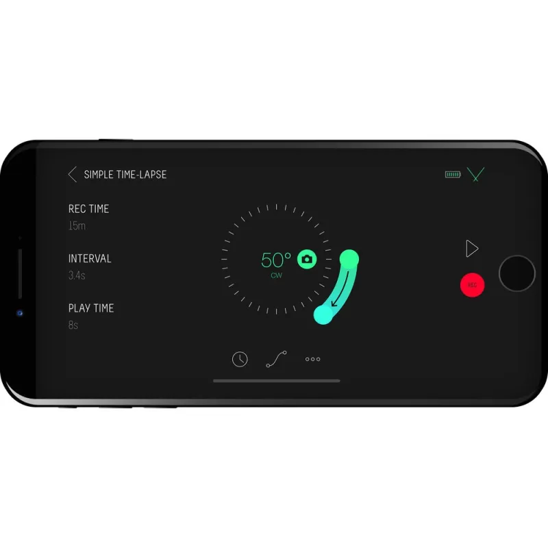 A lithium-ion battery provides approximately 15 hours of time-lapse and six hours of smooth, continuous video panning on a single charge. A USB-C cable is included for recharging the battery.