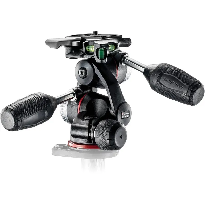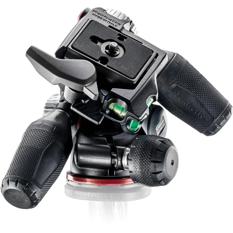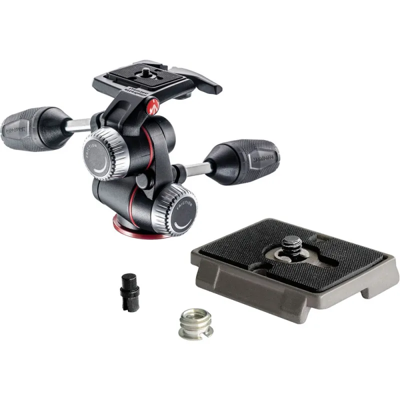 The MHXPRO-3W 3-Way Pan/Tilt Head from Manfrotto is a compact pan/tilt head with retractable handles that can be extended as needed. Two knobs control the friction for the front-to-back and side-to-side tilt, allowing you to fine tune the movements based on the weight of your gear. Three leveling bubbles ensure your composition is level on all axes. A 200PL quick-release plate with a 1/4"-20 camera mounting screw is included.