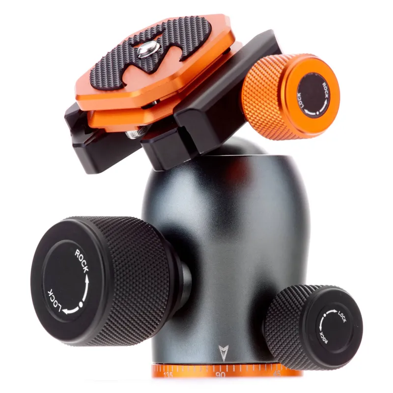 The AirHed Pro features a knurled knob which is used to control the ballhead. The ball can be tightened into a variety of positions, and the entire head can be rotated 360 ̊ on its base. The copper control knob tightens the clamp, so users can ensure their camera is held securely in place. The head features a bubble level, ensuring pictures are all perfectly aligned.