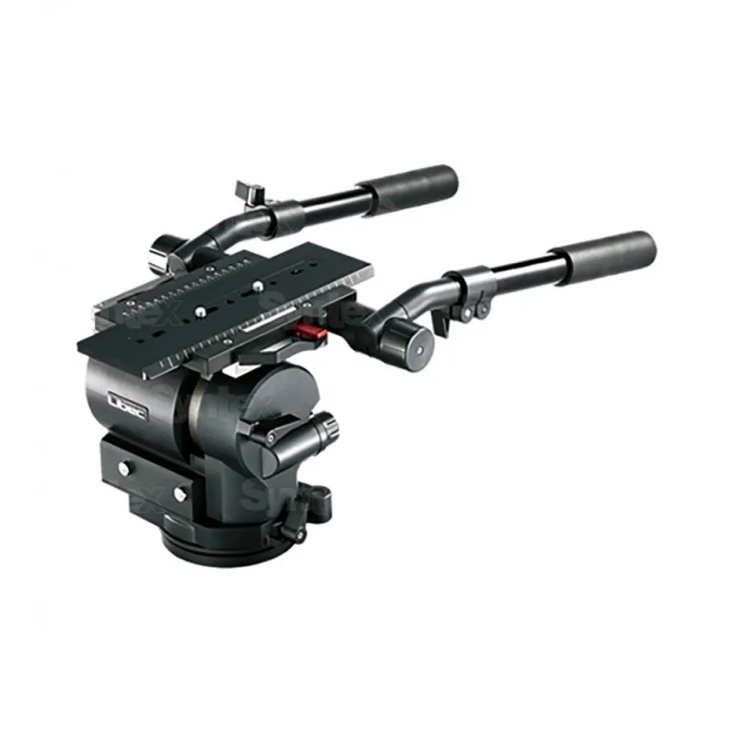 Modern head for studio cameras with quick release plate. Load capacity 69 kg, continuous counterweight range 28 - 65 kg, tilt +90° / -70°, plate displacement +/-75 mm, weight 12.7 kg. Camera fixing with two 3/8" screws.