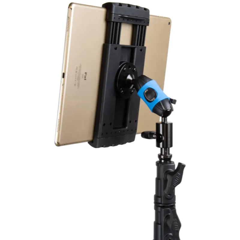 This aluminum-made round plate with a ball head has 7 holes, allowing the base to be rotated to suit the rectangular or diagonal configuration of the AMPS hole pattern.