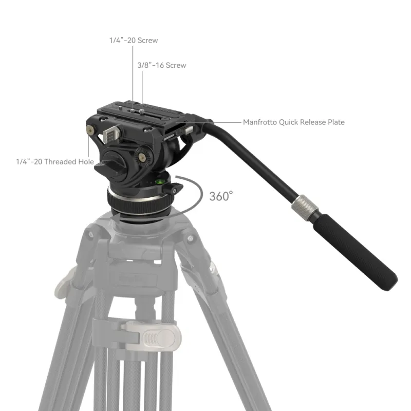 There is a detachable telescopic handle for easy storage and handling, and it is suitable for both left handed and right handed users. The video head comes with one 1/4 20 threaded hole to support the magic arm and other accessories, and a built in spanner to install and detach the camera.,