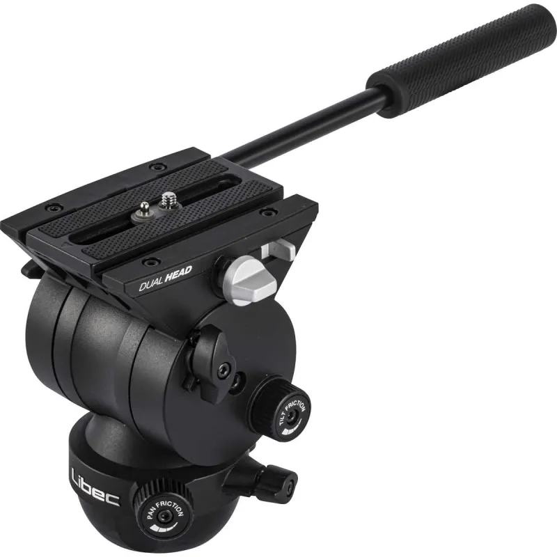 The 75mm Libec TH fluid video head comes with a swivel handle and has a load capacity of 5 kg. The dual head supports both 75mm bowls and flat bases of photographic tripods, sliders, etc. The quick release slide plate is compatible with Libec 650EX, TH-M, TH-X, TH-Z, NX Series, and HS Series models, as well as others from Manfrotto and Sachtler.
