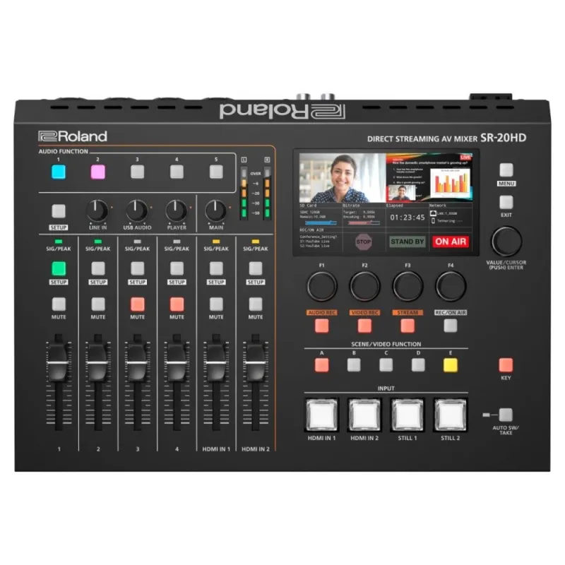 Powerful, portable, and simple to operate, the SR-20HD Direct Streaming AV Mixer makes it easy to manage the modern livestreaming requirements of your business or organization. No computer is required, and everything needed to switch and stream is integrated into a single unit that anyone can use with minimal training. When consistency, dependability, and network security are top priorities, the SR-20HD delivers professional results every time.