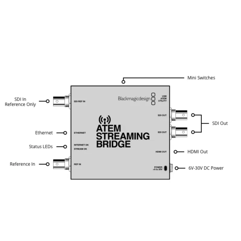 - ATEM Streaming Bridge supports video input streamed over ethernet from ATEM Mini Pro and ATEM Mini Pro ISO.