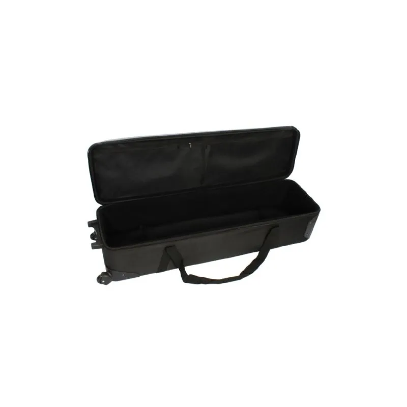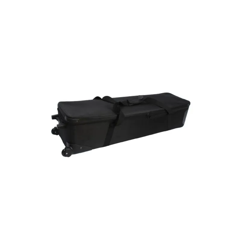 This heavy Falcon Eyes Bag on wheels is an aid for carrying your studio equipment easy and safely. The reliable bag comes with a hard, protective outside. The inside is soft lined and provides an optimal protection for your flash units. The bag is suitable for many different flash units because you can choose your own lay-out. The bag offers a lot of space so you can also bring your stands, cables, softboxes and umbrellas besides your studio flash units. The bag comes with two sponge boxes, with cylinder holes in them. These boxes can be used for transporting small objects, such as modeling lamps.