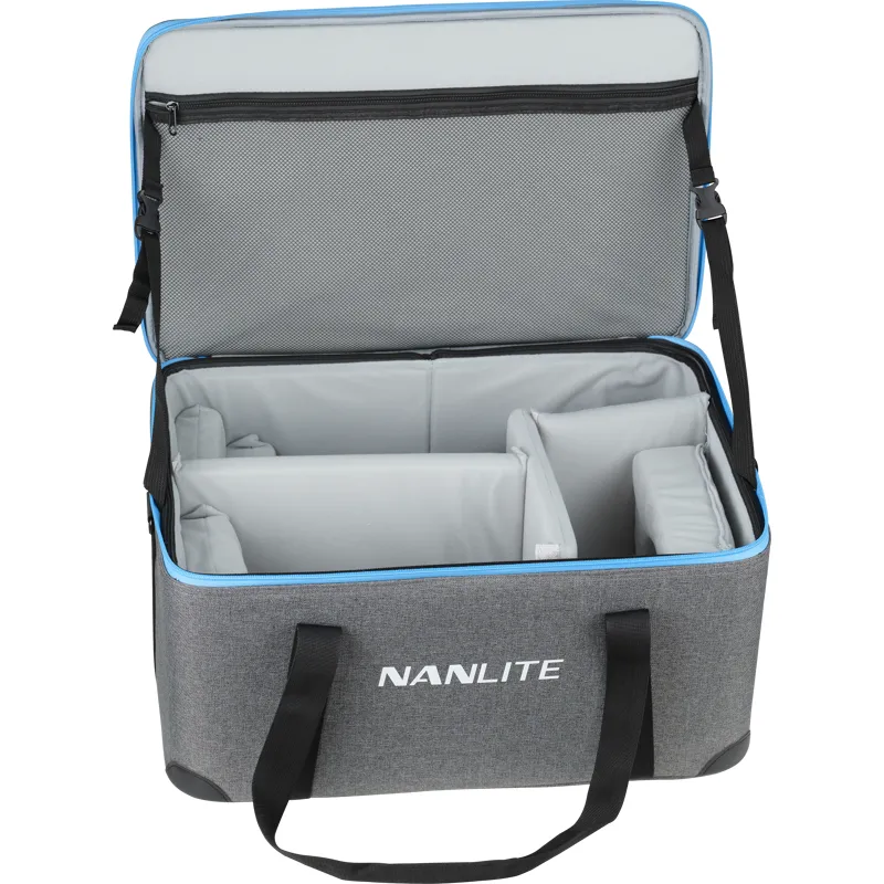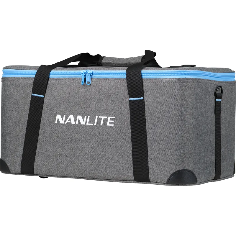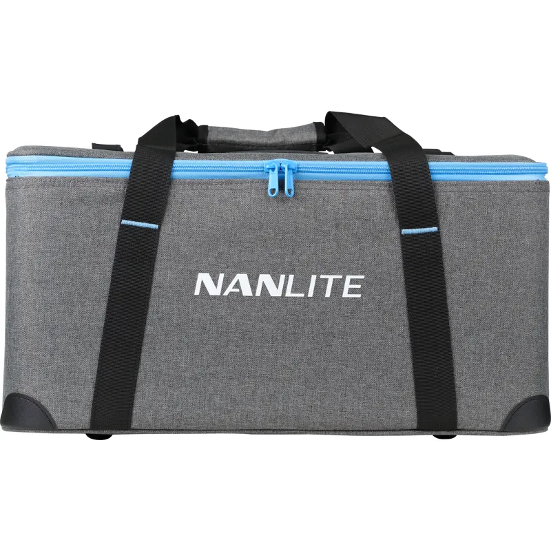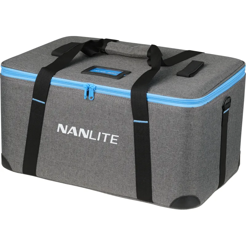 The Nanlite CCSFZ300II is a reinforced carrying bag with advanced padding designed to safely hold a Forza 300 II, 300B II, 500 II, or 500B II LED spotlight, control unit, and reflector. The bag is made with high-quality fabric and features advanced foam lining on the interior.