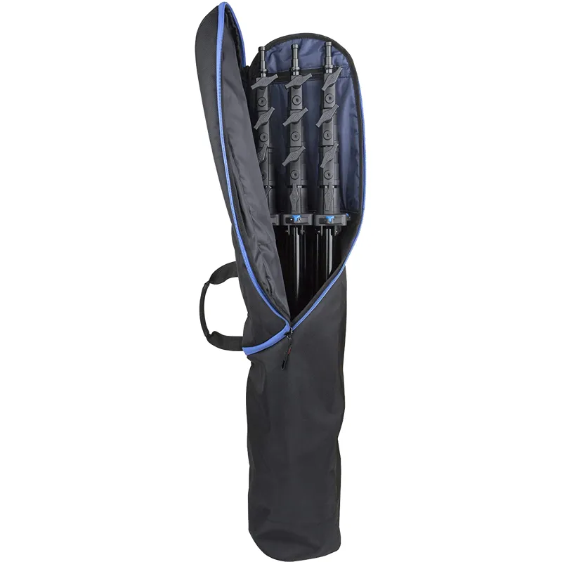 The additional handles make it easy to carry the bag horizontally when you have a backpack full of gear. The sturdy dual zipper can be placed in either the open or closed position. The wrap-around zipper provides a large opening, making it easy to get stands in and out of the bag. This is a great bag to handle all of your light stand needs, allowing for up to 3 Kupo Snap stands up to 107cm.