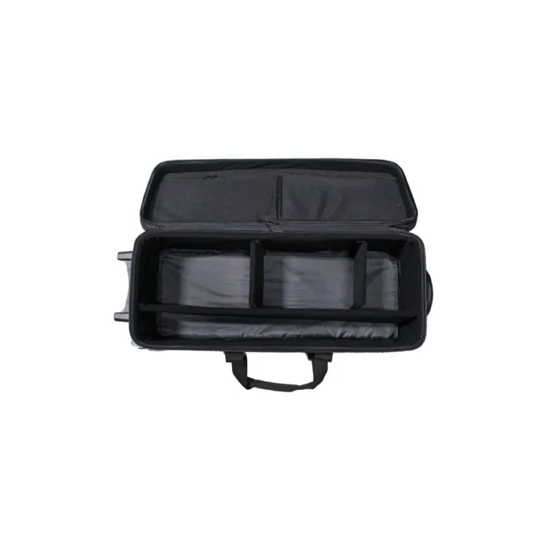 This heavy Falcon Eyes Bag on wheels is an aid for carrying your studio equipment easy and safely. The reliable bag comes with a hard, protective outside. The inside is soft lined and provides an optimal protection for your flash units. The bag is suitable for many different flash units because you can choose your own lay-out. The bag offers a lot of space so you can also bring your stands, cables, softboxes and umbrellas besides your studio flash units.