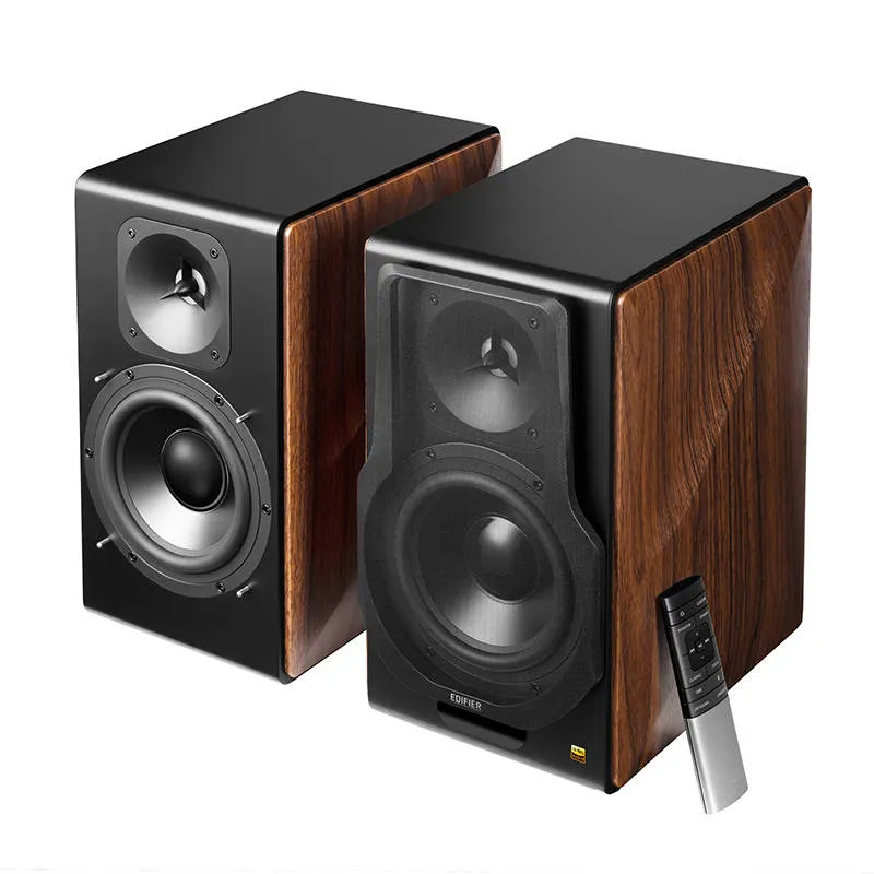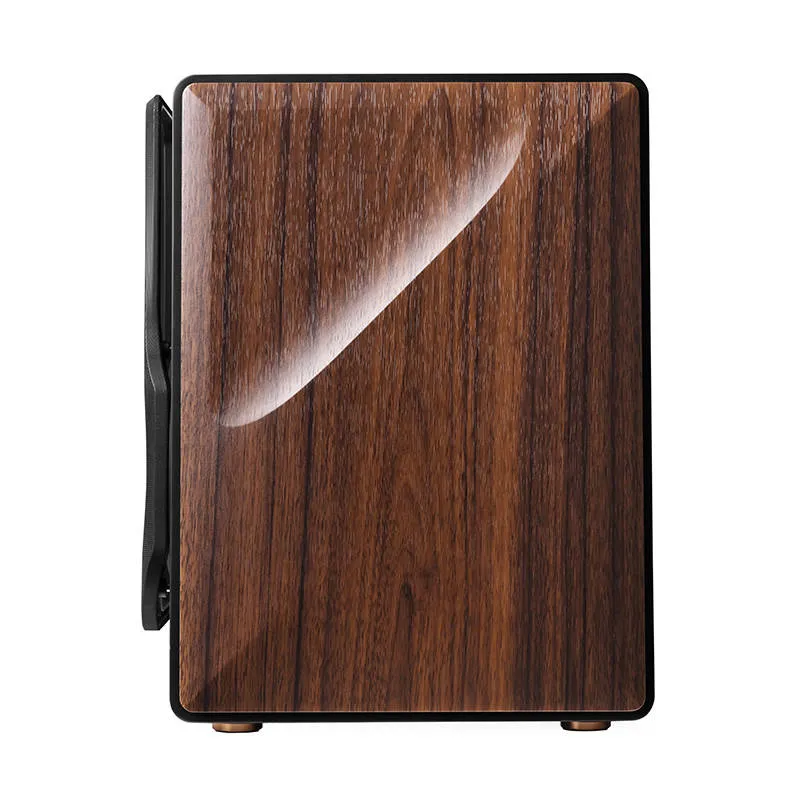 The speakers combine classic wooden enclosure beauty with advanced features. The durable wooden construction ensures low distortion. The speakers feature a small OLED display for volume and status information.