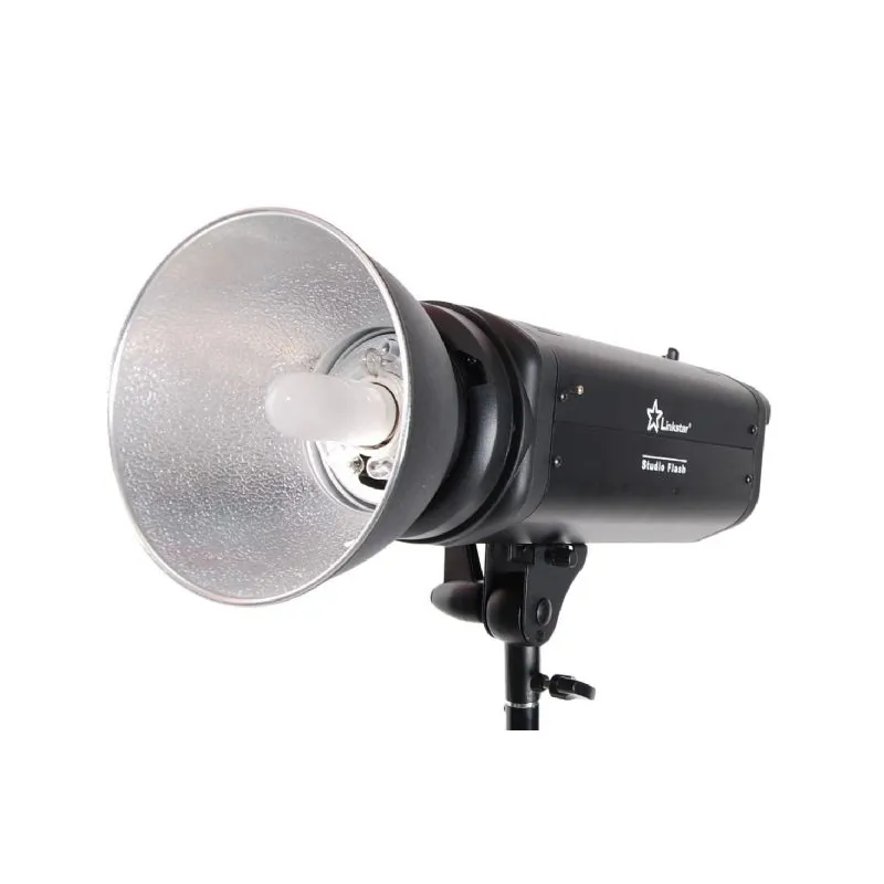 Linkstar LF-500D flash units are designed for professional use in the studio. They feature a fast charging time, a metal body, active cooling, an S-type bayonet, and a umbrella holder for accessories, along with a built-in light receiver. The digital display of the flash allows for precise power settings.