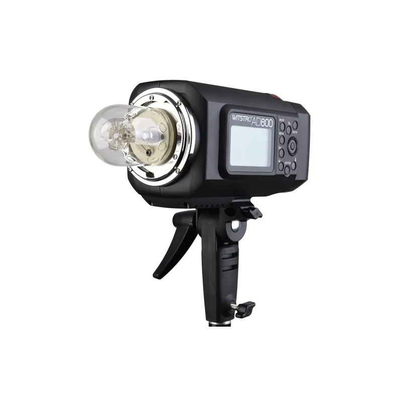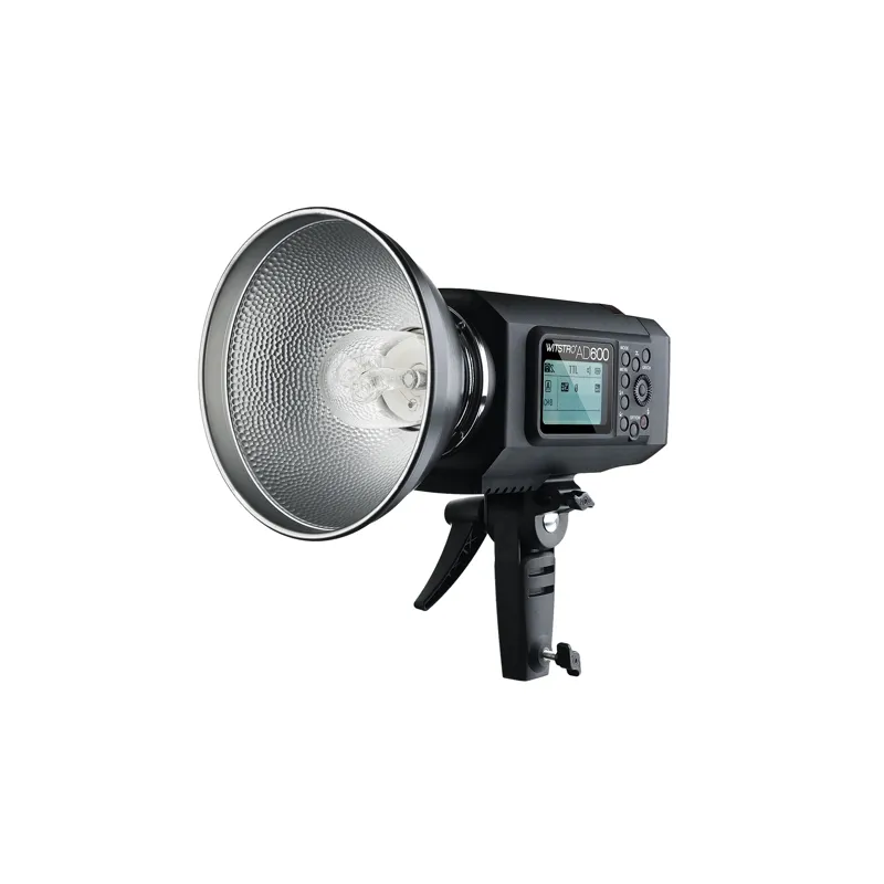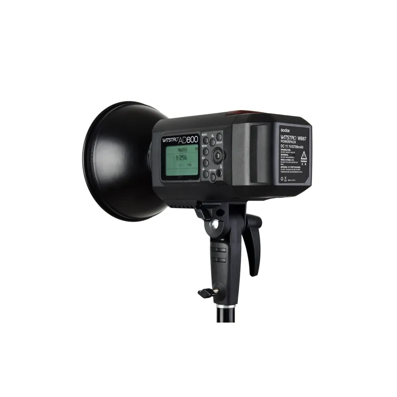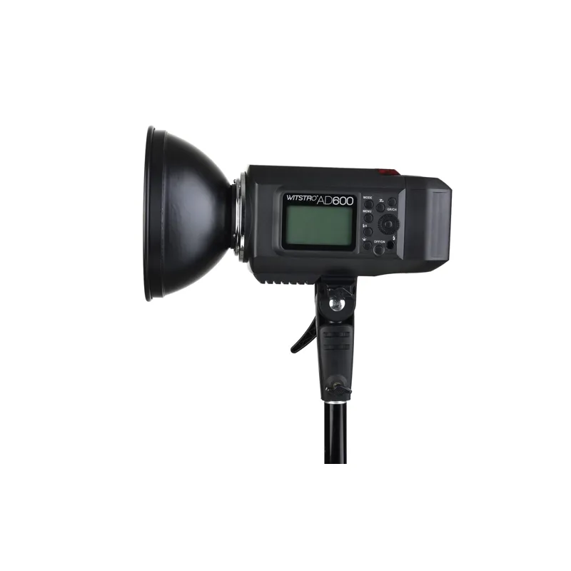 All settings are easy to change thanks to the clear control buttons, jog wheel, and the easy-to-read LCD display on the side. For optimal performance, the AD600BM is equipped with a fan that ensures the flash stays cool even after many flashes. You can fire up to 500 times on one battery charge, and the power of the flash is adjustable from 1/256 to full power. The flash head can also be used for High Speed Sync flashes with a speed of up to 1/8000s.