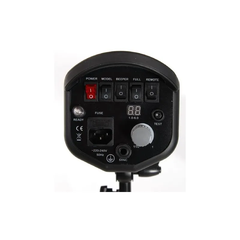 Jaudīga, profesionāla studijas zibspuldze ar LCD ekrānu Falcon Eyes TF-900L studio flash; Power cable; Synchronization cable; Reflector; Flash tube; Modeling lamp 250W; Manual