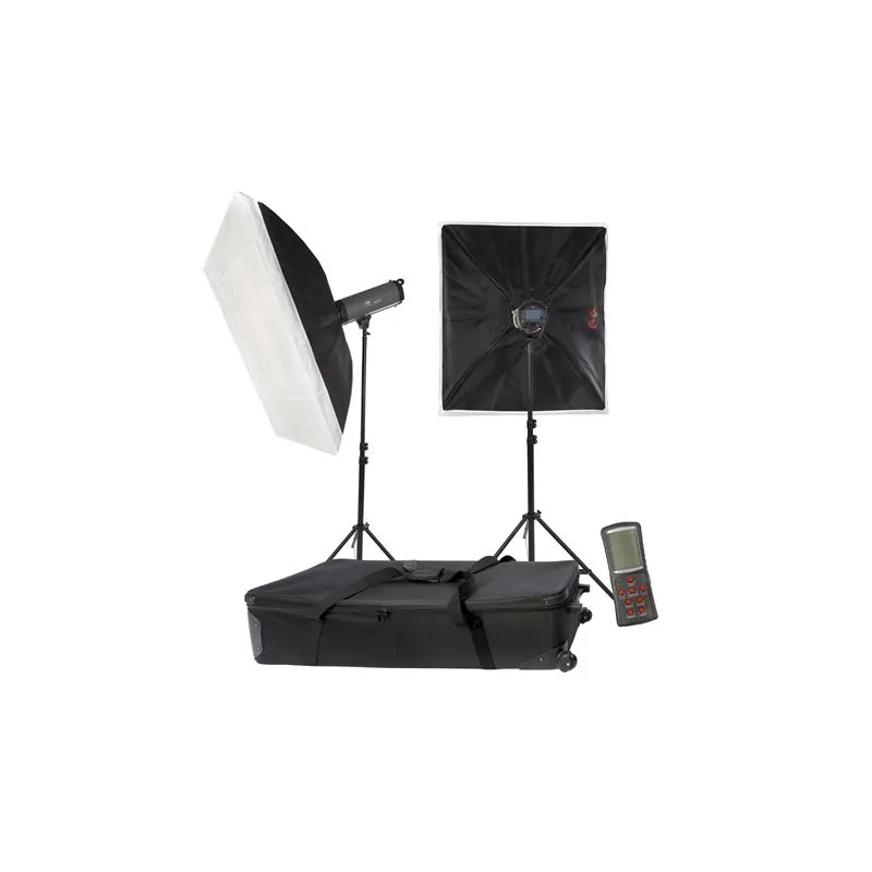 2 x Studioflash TF-900L; 2 x W806 light stand (114-260 cm);2 x Softbox (80 x 100 cm); 1 x CC-02 case (125 x 35 x 28 cm); 1 x RC-2L remote control; 2 x Reflector; 2 x Modeling lamp; 2 x Power cable; 2 x Synchronization cable; Manual