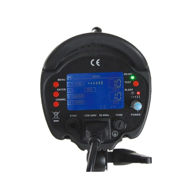 The Falcon Eyes studio flash set TFK-2400L is a very complete flash kit for the professional user. Included in delivery is a sturdy transport case with wheels with which you can transport the set easily. The studio flash kit comes with the modern Falcon Eyes TF-400L studio flash. This professional studio flash has 400Ws flash power and comes with all the accessories you need to start right away. The studio flash offers everything you would expect of a professional studioflash, such as a fast recharging time, sturdy metal housing, professional bayonet-connection for accessories, a built-in slave receiver and a very accurate adjustability. Of course, the modeling lamp can be switched on and off and its power can also be set proportional to the flash power. Also, the flash is equipped with an auto-power dump function and overheating protection (sleep).