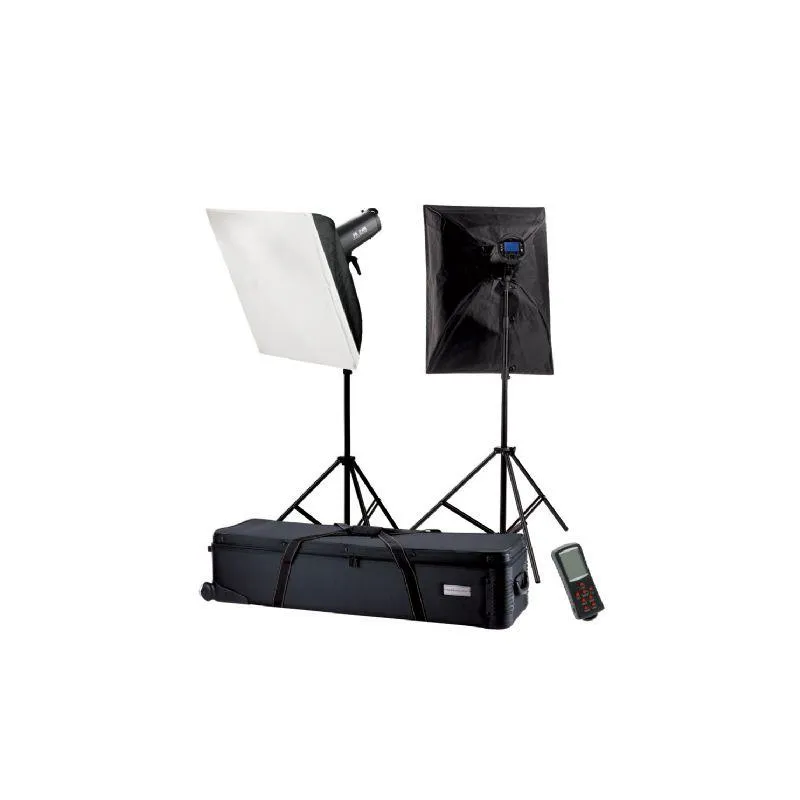 2 x Studioflash TF-400L; 2 x W805 light stand (101-235 cm);2 x Softbox (80 x 80 cm); 1 x Case CC-06 (104 x 36 x 27 cm); 1 x RC-2L remote control; 2 x Reflector; 2 x Modeling lamp 150W; 2 x Power cable; 2 x Synchronization cable; Manual