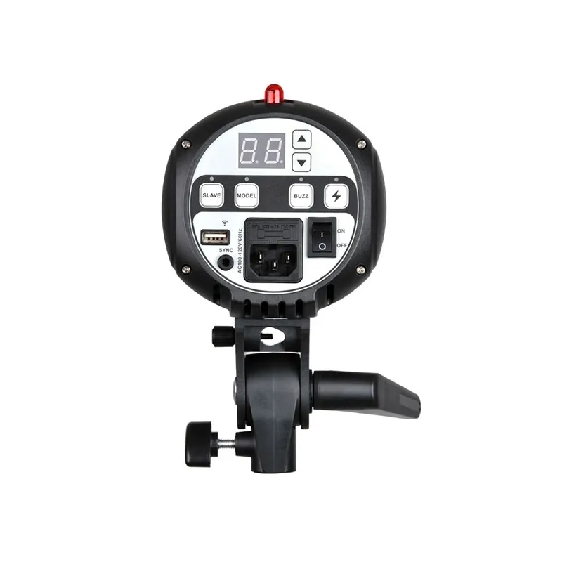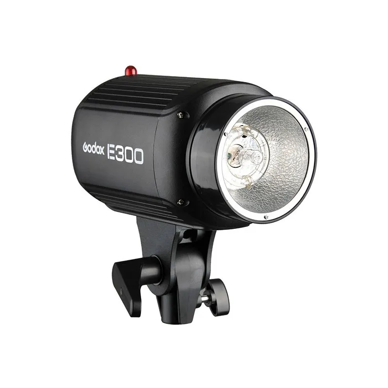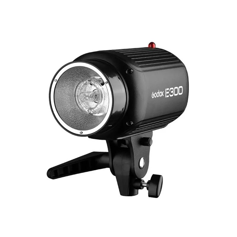 The Godox E300 flash head is adjustable in brightness in 20 steps and has a bright LED display to read the set value. To illuminate the scene and set up your camera easily, the flash head is equipped with a 150 Watt modelling lamp. The brightness of the modelling lamp can be adjusted in nine steps. The complete flash set is easy to transport in the supplied case with wheels.