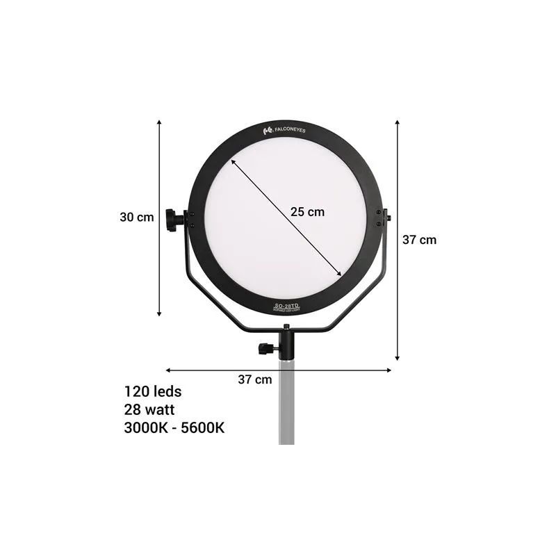 With this set you will receive two SO-28TD LED lamps from the popular Falcon Eyes Sophiez series. The lamp is equipped with 120 small LED lights (not individually visible), which together provide an output of 28 Watt. Because of the high CRI value of 95, you can always count on natural colours. You can set the colour temperature yourself from 3000K (warm yellow light) to 5600K (daylight), and everything in between. In addition, you can also determine the power of the lamp yourself. By means of optionally available NP-F batteries, you can also use the lamp in places where no mains power is available, for example outside.
