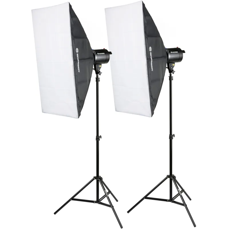 - SCOPE OF DELIVERY: 2x studio flash Bresser BRM-300AM 2x tripod 200cm 2x softbox 60x90cm 1x flash sync cable 2x lamp 150W 2x flash tube 300W 2x power cable 2x replacement fuse
