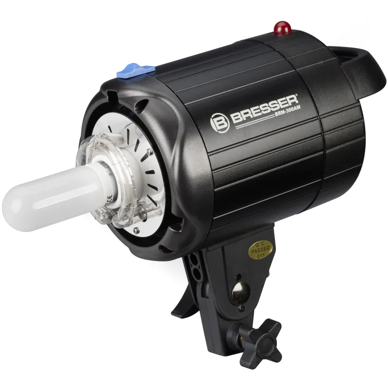 This flash has a Bowens-S bayonet connector , so you can use a lot of standard accessories from BRESSER with the BRM-300AM . Thanks to the fast recharge time of 0.5 to 1.0 seconds , the flash is ready for use. The housing is very robust and the 150W halogen lamp can be switched on and off.