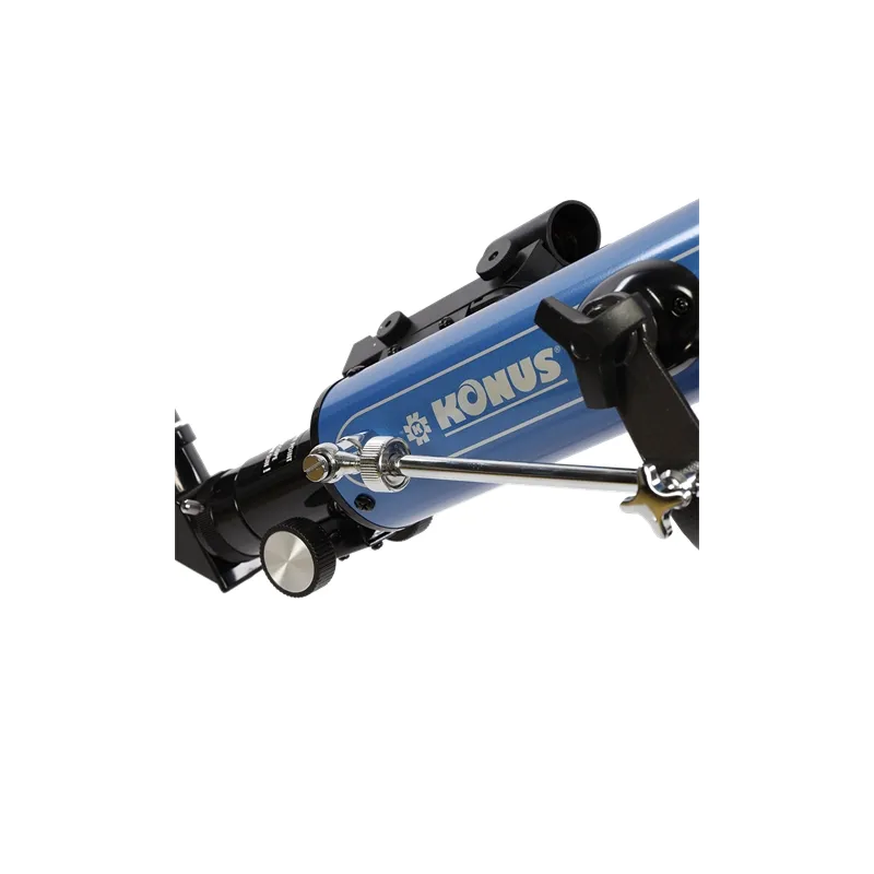 When a tripod has an Equatorial mount, celestial bodies can be followed by simply turning a little lever. This is possible because the axis of the mount is adjusted parallel to the rotation axis of the earth. In such a case, it is also possible to equip the telescope with a tracking motor, which makes tracking fully automatic. See for example Konustart-900B which can be found under optional accessories.