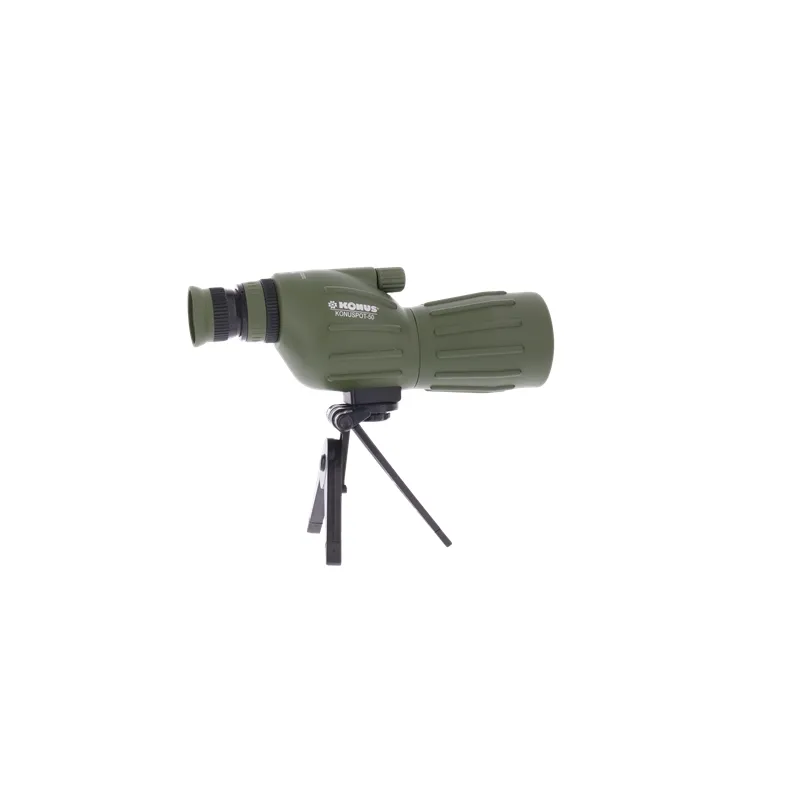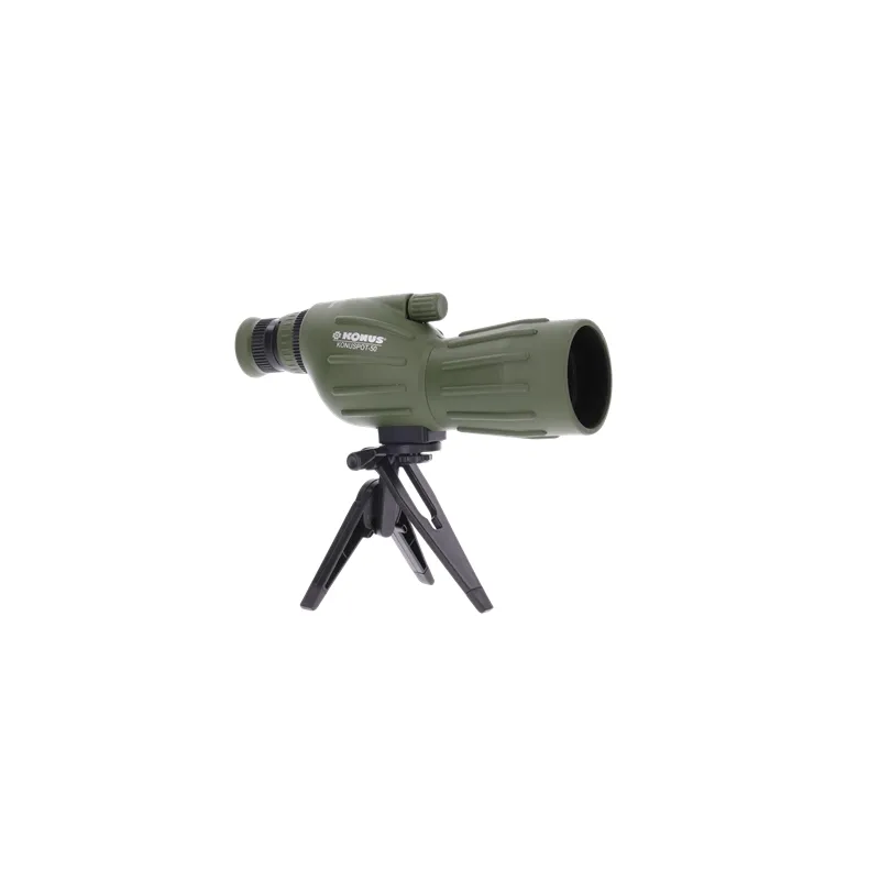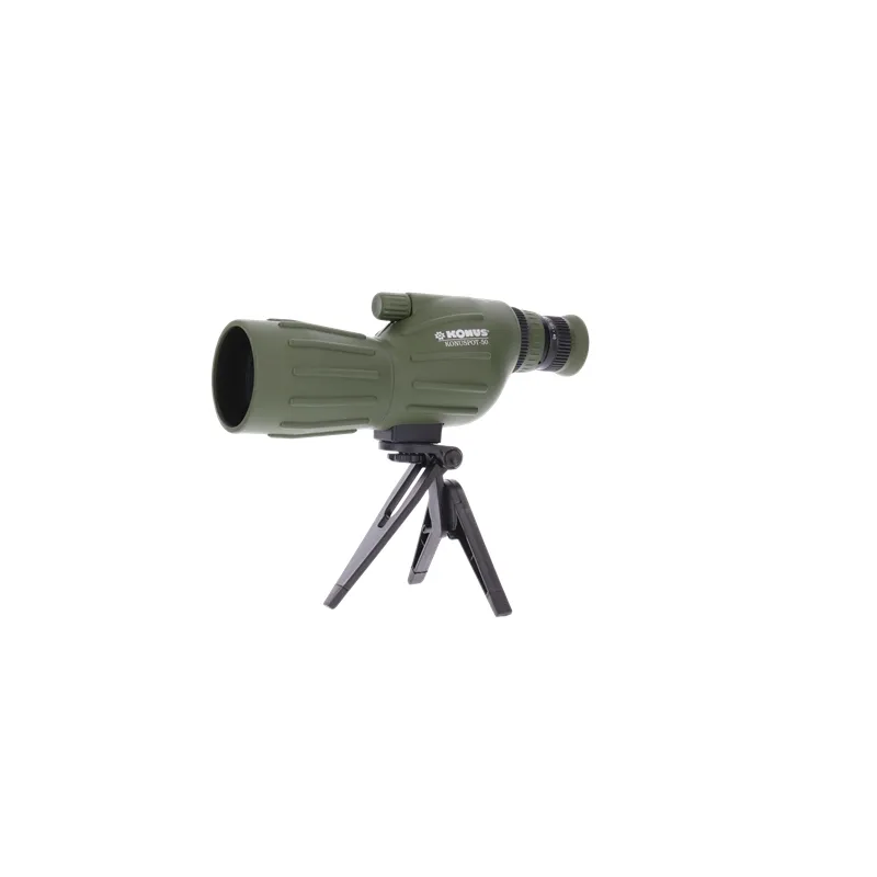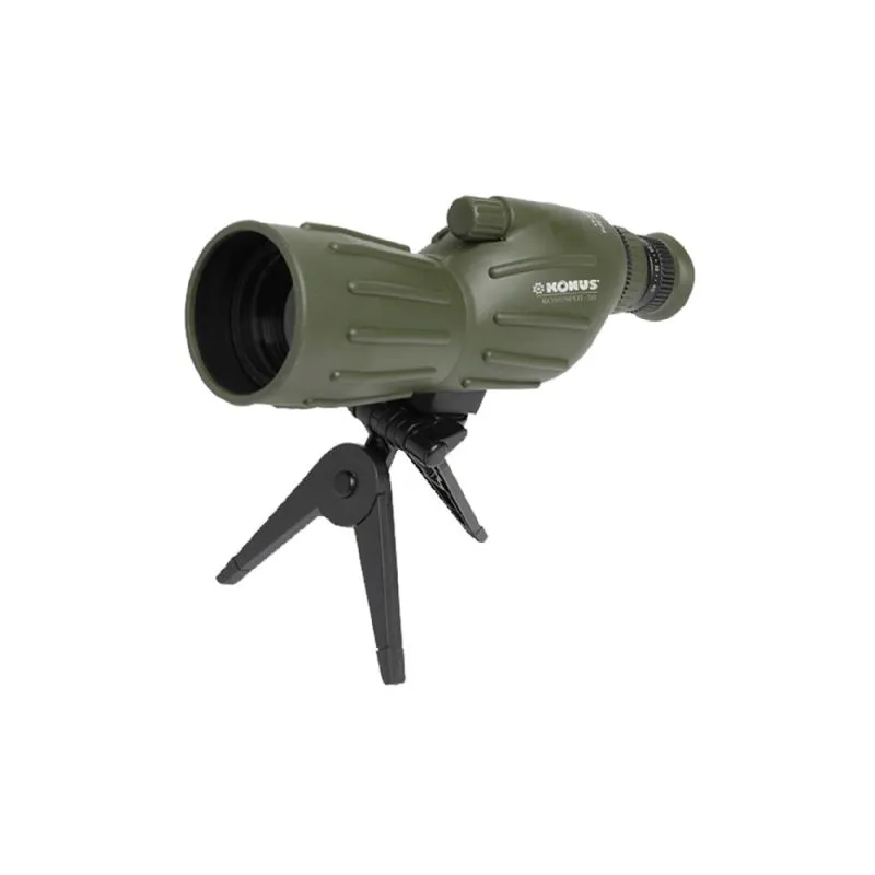 The Konus Spotting Scope Konuspot-50 15-40x50 is a basic spotting scope with a straight view which is useful for novice spotters, but also children like to see through a spotting scope in the same position as when looking through binoculars. The Konuspot-50 is small in size and light in weight, also because of the rubber casing it is pleasant to handle. If you want to observe for a long time, it is advisable to use a tripod. A table stand is included, which you can place in front of the window so that you can look outside.