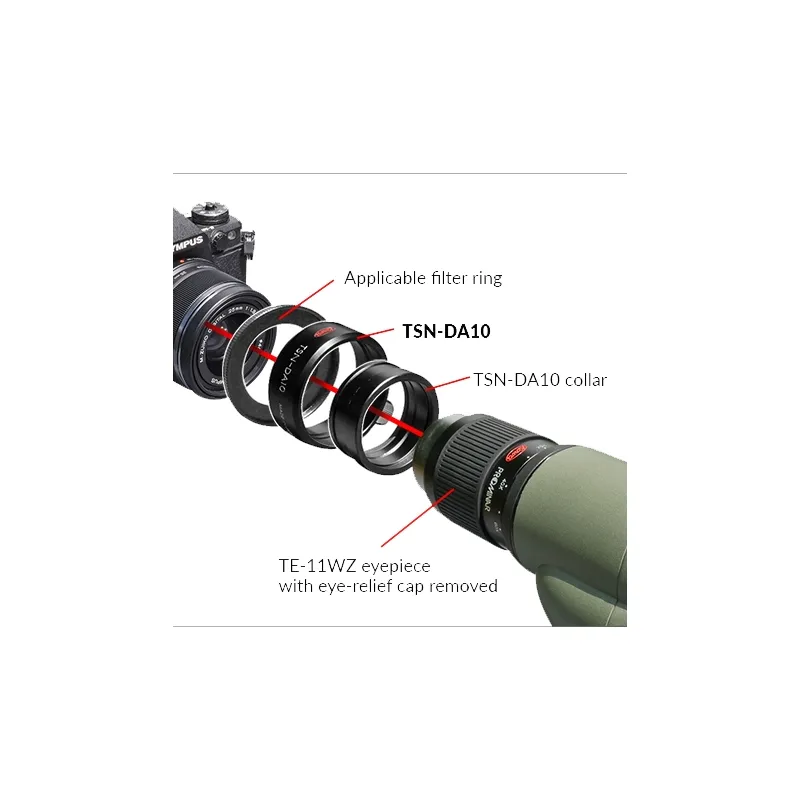 You need the Kowa Adapter Ring TSN-AR46 to connect your camera lens with Ø46mm filter thread to a TSN-DA10 or TSN-DA20 digiscoping adapter. Connect your digital camera to your Kowa spotting scope and use your spotting scope as a telephoto lens.